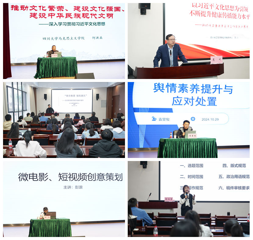 为全面贯彻落实习近平总书记关于宣传思想文化工作的重要指示精神,加强学院新闻宣传和网络评论员队伍建设,10月28日-30日,学院2024年宣传队伍能力素养提升培训在中共四川省卫生健康委党校举办。全体参训人员参加同期举办的全省卫健系统领导干部媒介素养暨核心网评员培训班开班仪式及当天的授课。