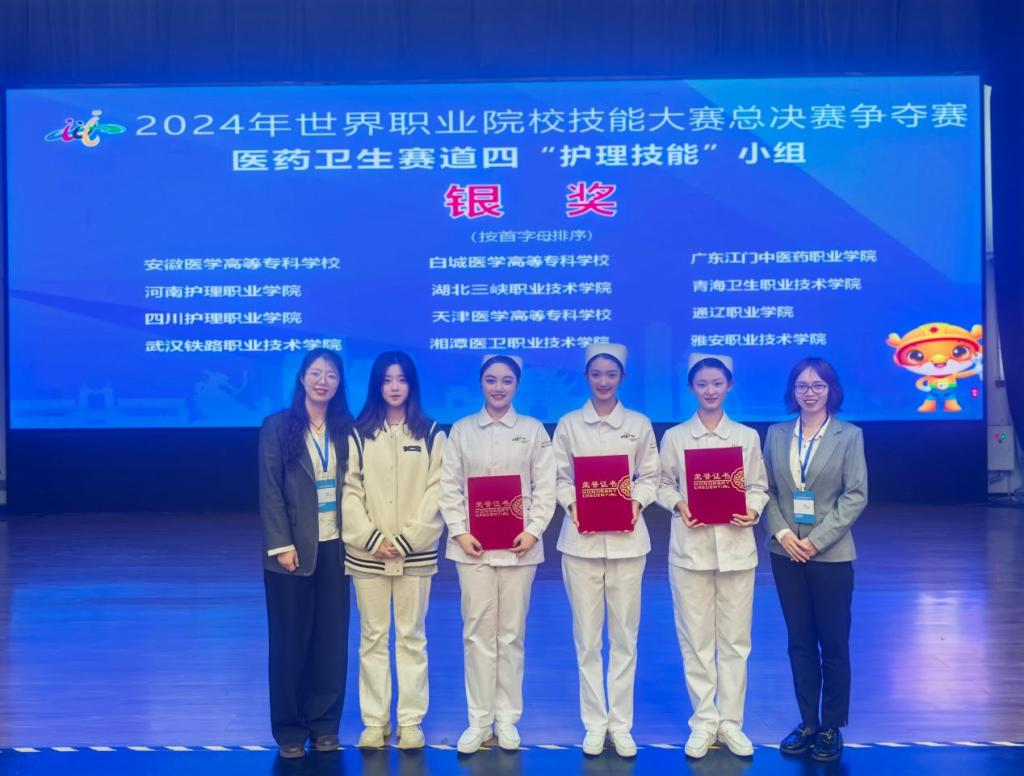 护理系两支代表队分别在“护理技能”“婴幼儿健康养育照护”赛项争夺赛中荣获银奖,康复技术系代表队在“康复治疗技术”赛项争夺赛中荣获银奖。