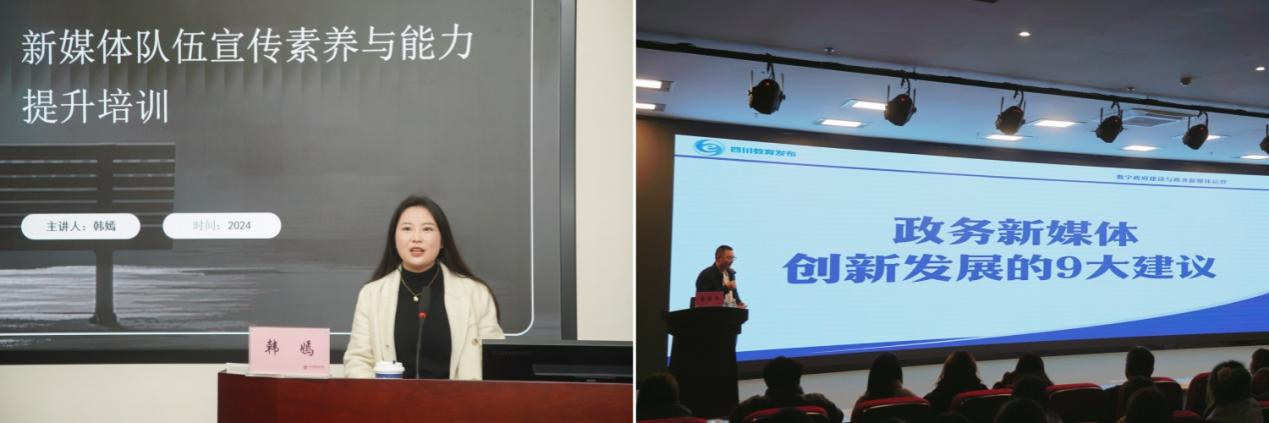 为全面提升宣传队伍的政治素质和业务能力,助力学院高质量发展,继学院10月举办2024年宣传队伍能力素养提升培训后,11月29日,学院专门针对新媒体队伍开展宣传素养与技能提升培训。本次培训邀请四川文化传媒职业学院设计与媒体艺术学院数字媒体系党支部书记韩嫣、四川省教育融媒体中心新媒体主编黄国兵分别在成都和德阳校区开展专题讲座,内容各有侧重。学院党委委员、宣传部部长姚霞出席会议。