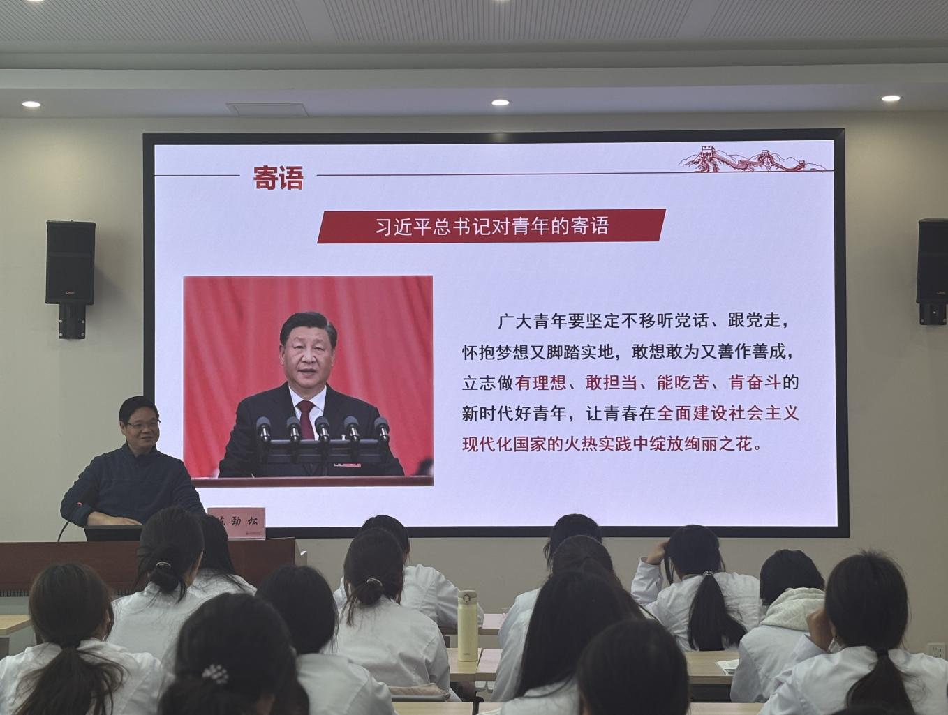 陈劲松还结合时代对青年的召唤、国家方针政策、康复治疗领域的专业发展趋势及社会需求等多方面因素,为学生们描绘了职业发展蓝图。他强调,青年一代肩负着时代赋予的重任和使命,希望同学们以优秀学姐学长为榜样,紧跟时代步伐,坚定理想信念,修炼道德品格,磨练坚强意志,刻苦学习知识,脚踏实地,争做有理想、敢担当、能吃苦、肯奋斗的新时代好青年,积极投身中国式现代化建设的火热实践,在奋斗中绽放绚丽之花。