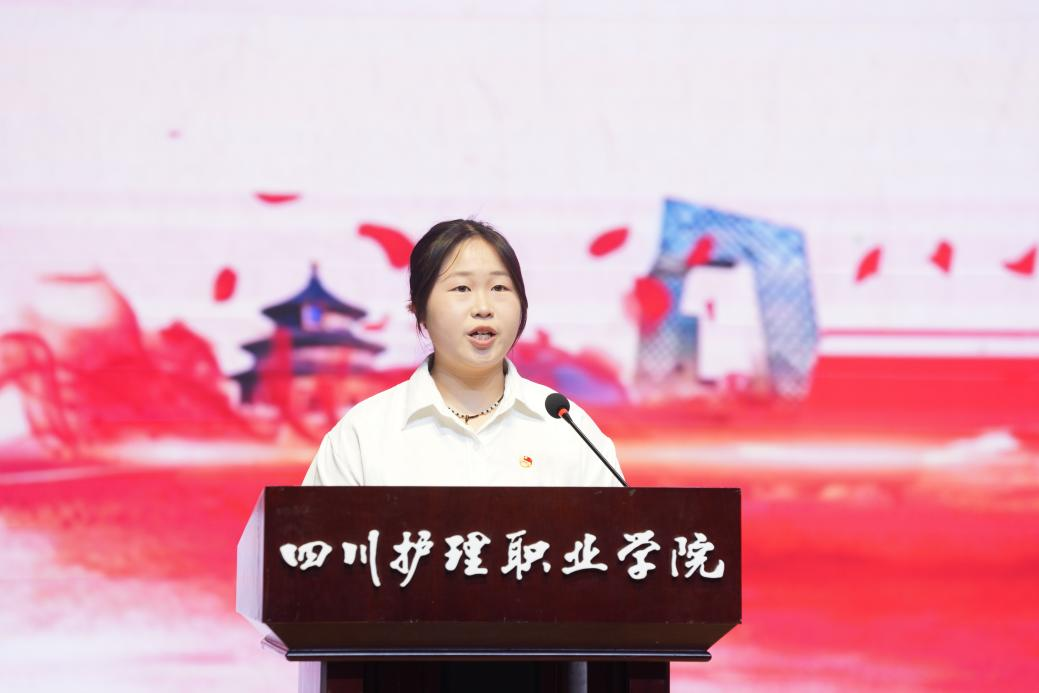 2023级预防医学大专班杨薪玉作为学员代表分享了在校期间的学习收获、实践感悟并代表青马学员作表态发言。