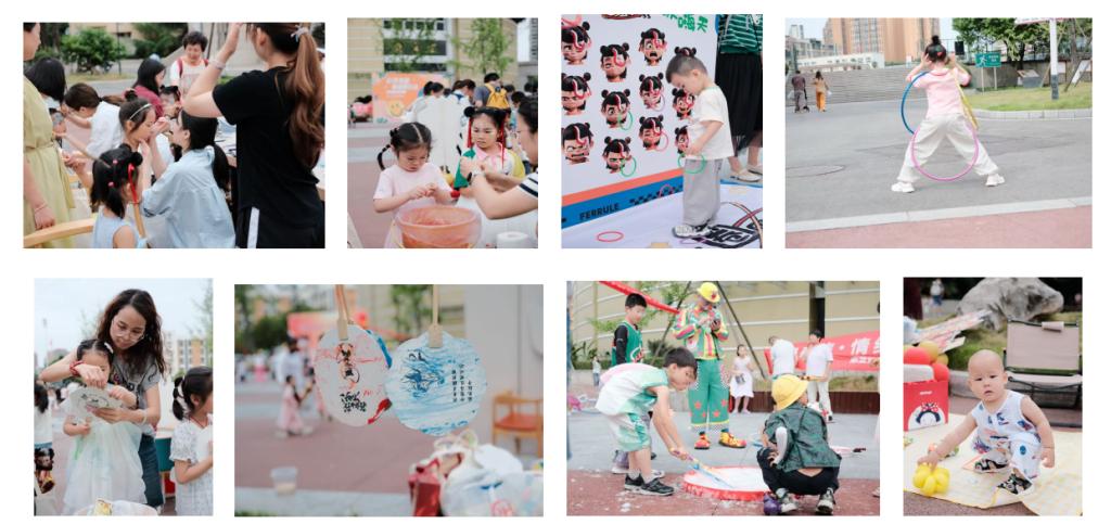 本次活动以“哪吒护童心˙快乐伴童行”为主题,将趣味性、教育性与互动性巧妙融合,设置了丰富多彩的亲子活动项目。“儿童彩妆”区,在医美专业教师和学生的帮助下,为孩子们打造出可爱俏皮的妆容,个个都是小小时尚达人;“寻找哪吒”环节,孩子们化身勇敢的小探险家,穿梭在活动场地,凭借敏锐的观察力寻找隐藏的“哪吒”元素,在探索中收获乐趣;“踢毽子”“无敌乾坤圈”“幸运套圈”“DIY漆扇”等传统与创新结合的游戏,孩子们与家长们一同参与,在运动中释放活力。现场充满欢声笑语,洋溢着浓浓的亲子温情。