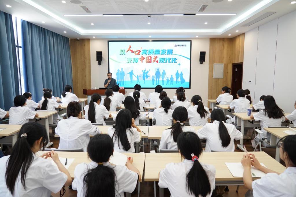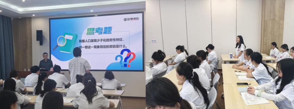 罗小强引导同学们辩证地看待人口问题。他强调,人口问题是一个复杂的系统性问题,不能简单地只看某一个方面。人口负增长虽然会带来劳动力减少、消费市场萎缩等挑战,但能推动产业升级和技术创新,促使经济发展从依赖劳动力数量向依靠劳动力质量转变。他重点讲解了推进人口高质量发展的相关内容,引导同学们关注国家人口发展战略,将个人的成长与国家的需求紧密结合起来。