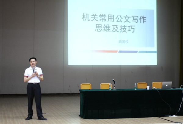 胡老师结合自身工作实际和个人体会,围绕法定公文和非法定公文的常规要求进行讲解,从文种、规则、格式、程序、写作等方面讲授了如何写作制作法定公文,用实例讲解工作计划、工作要点、工作总结、报告等7个常用公文撰写的写作思维和技巧。胡老师授课理论与实例相结合,深入浅出、语言生动,气氛活跃。