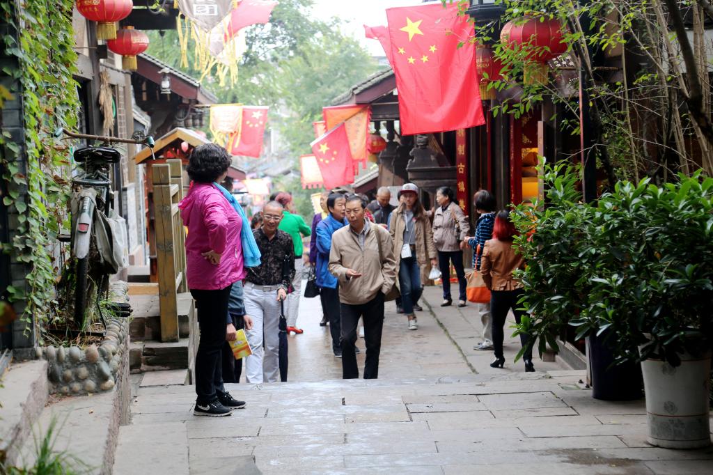 座谈会后,退休教职工一起游览了五凤溪古镇,老同志们有说有笑,大家交流着彼此的近况,谈着自己幸福的晚年生活。尽管年事已高,但他们仍保持一颗年轻的心态,在拥有深厚文化底蕴和独特魅力的五凤溪古镇尽情的拍照留恋,其乐融融。