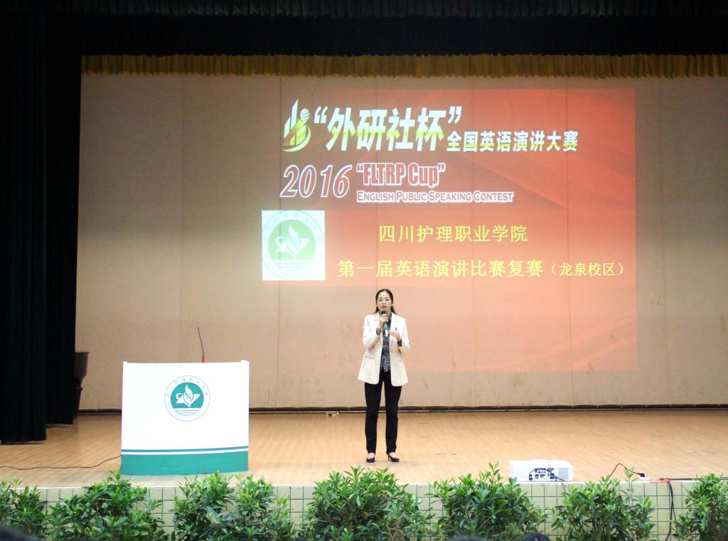 10月11日晚,为选拔参加2016“外研社杯”全国英语演讲大赛(四川赛区初赛)的选手,学院基础部主办、外语教研室承办、护理系学生会协办的beat365官方网站第一届英语演讲比赛(复赛)在龙泉和德阳两校区的学术报告厅同步顺利举行。