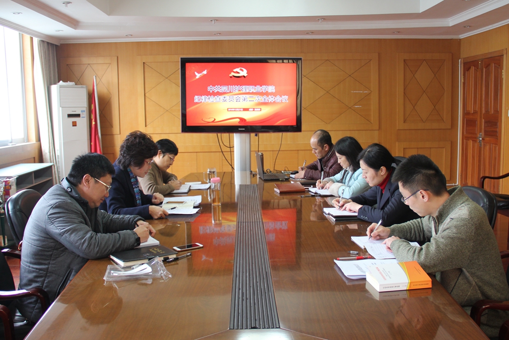 2016年12月21日,中共beat365官方网站第一届纪律检查委员会第二次全体会议在学院龙泉校区综合楼三楼会议室召开。学院纪委书记钟丽同志主持会议。本次会议传达了学院党委会会议精神,学习了上级文件,审议了纪委相关制度。