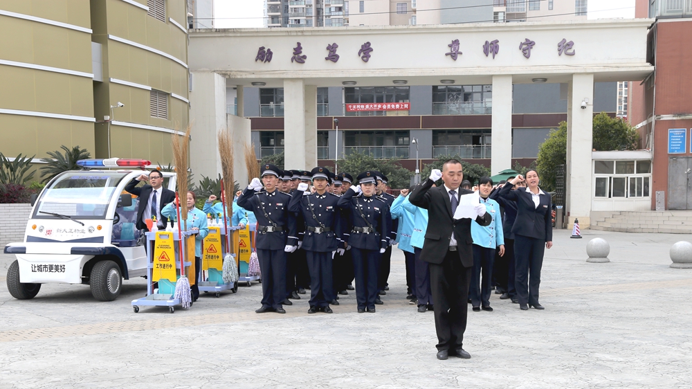 3月31日下午,重庆新大正物业集团股份有限公司与成都瑞安物业管理有限公司在学院龙泉校区举行安保、保洁服务交接仪式。学院分管安全的院领导卢燕、保卫处负责人及全体工作人员、后勤管理处相关工作人员参加了仪式。