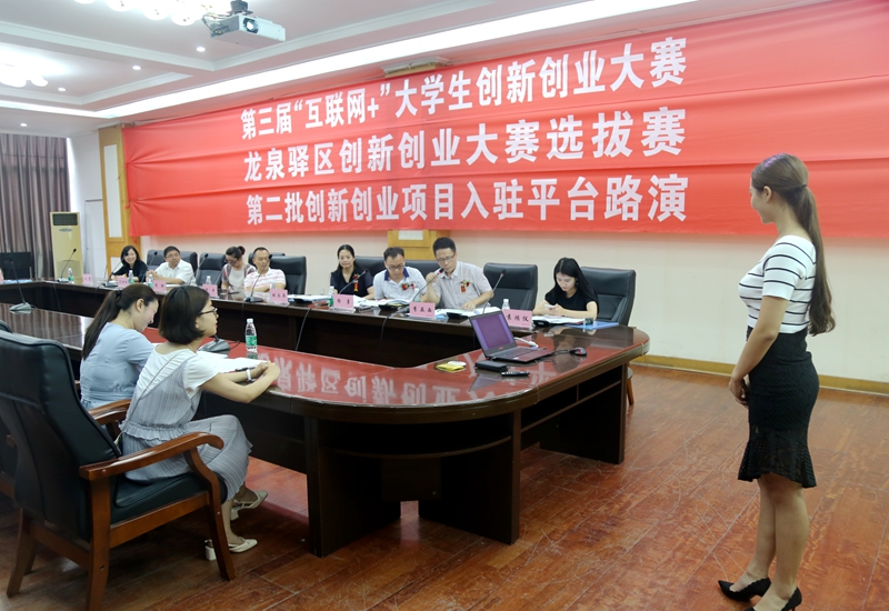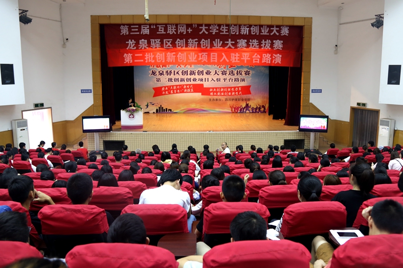 “互联网+”成就梦想,创新创业开辟未来。2017年6月23日,beat365官方网站第三届“互联网+”大学生创新创业大赛、龙泉驿区创新创业选拔赛、第二批创新创业项目入驻平台项目路演在成都校区学术报告厅拉开序幕。龙泉驿区就业局及团委领导、校外企业家、兄弟院校的创新创业专家团队及学院领导出席了开幕式。学院党委书记江涛在开幕式现场致辞并宣布开幕,学院党委副书记张志林和学院党委委员曾孝鹏为郑应松等八位校外创新创业导师颁发聘书,龙泉驿区就业局副局长陈兵为入驻学院孵化园的康健理疗项目颁发了一万元创业资金,学院副院长姚永萍现场作了讲话并宣布评审规则,最后在场的领导、评审同学生们合影。