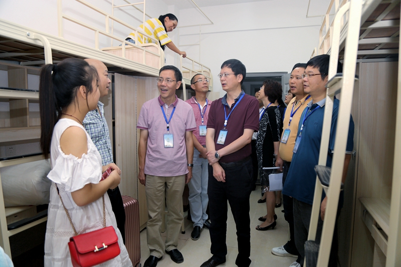 学院领导来到新宿舍询问新生入住体验并与家长亲切交谈