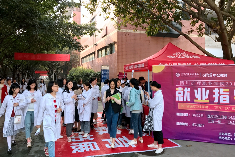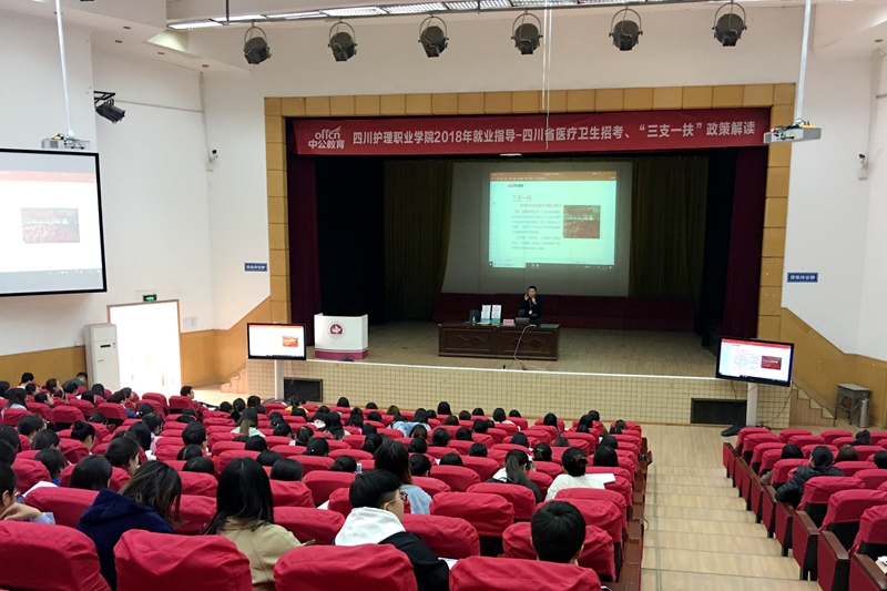 为营造鼓励高校毕业生到基层工作的良好氛围,大力加强就业指导和就业服务,拓展学生就业渠道,增强学生就业能力,提升学生初次就业率与就业质量,3月15日,我院邀请中公教育研究院在成都校区学术报告厅举办了“beat365官方网站2018年就业指导讲座--四川省医疗卫生招考、三支一扶政策解读”讲座、中公教育高校巡回书展免费赠书等活动。800余名学生参加了本次讲座。