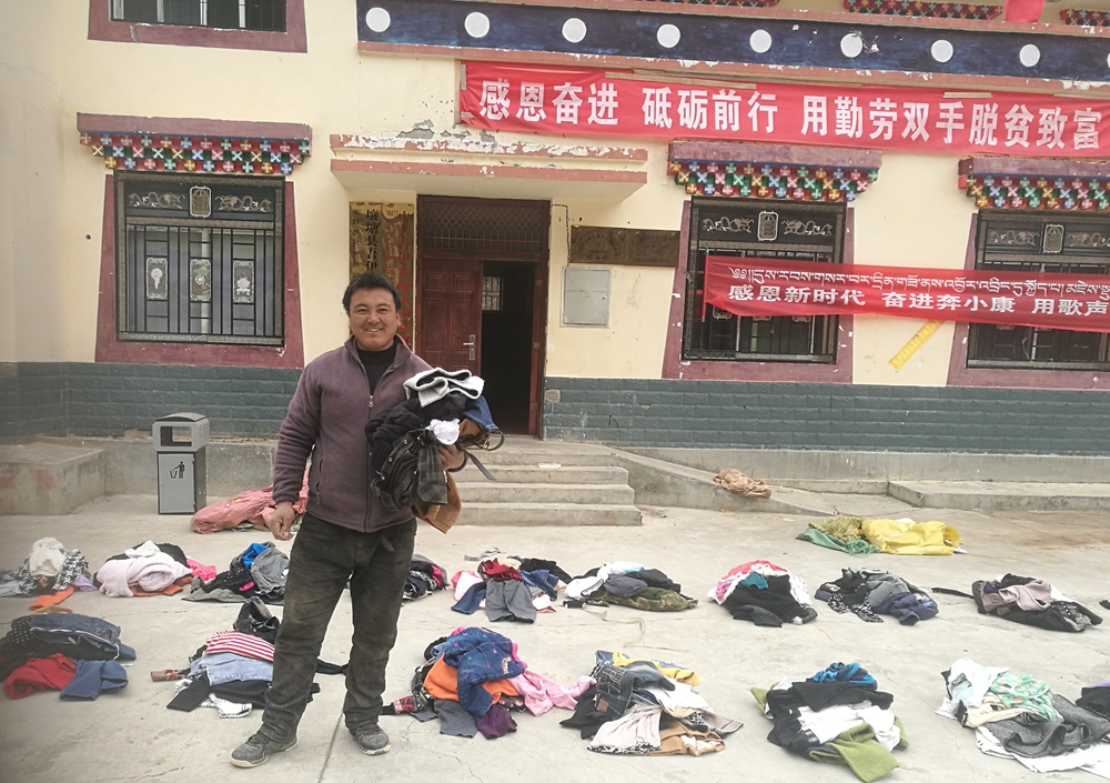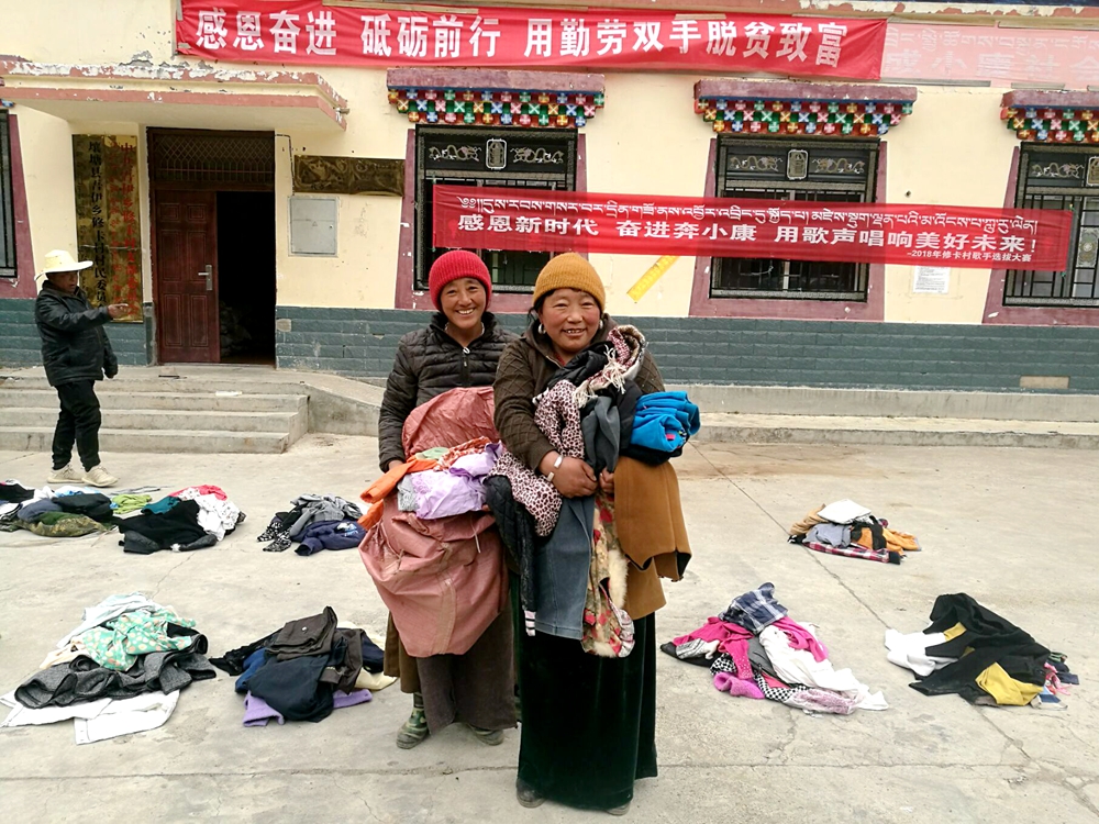4月7日下午,阿坝州壤塘县吾衣乡修卡村30位建档立卡贫困户看着自己手里的捐赠衣物,连连用藏语说着“卡卓卡卓”,用最朴实的言语感谢我院护理系党支部老师们的爱心捐赠。