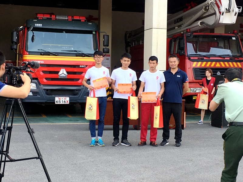 在消防官兵的带领下,师生参观了消防官兵日常训练、学习、生活环境,了解消防官兵灭火救援训练、战斗情况和丰富的业余生活,体验消防救援设备和各类消防车的强大救援功能。