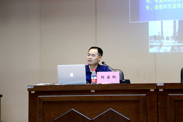 胡国权主任讲座主题是“法定公文写作”,胡主任详细介绍了法定文种类型、各类文种区别,行文格式、制发程序及常见错情等,胡教授讲座的内容不仅丰富,而且很有实用价值,老师们深受启发,本次培训对日后行政公文写作将大有裨益。