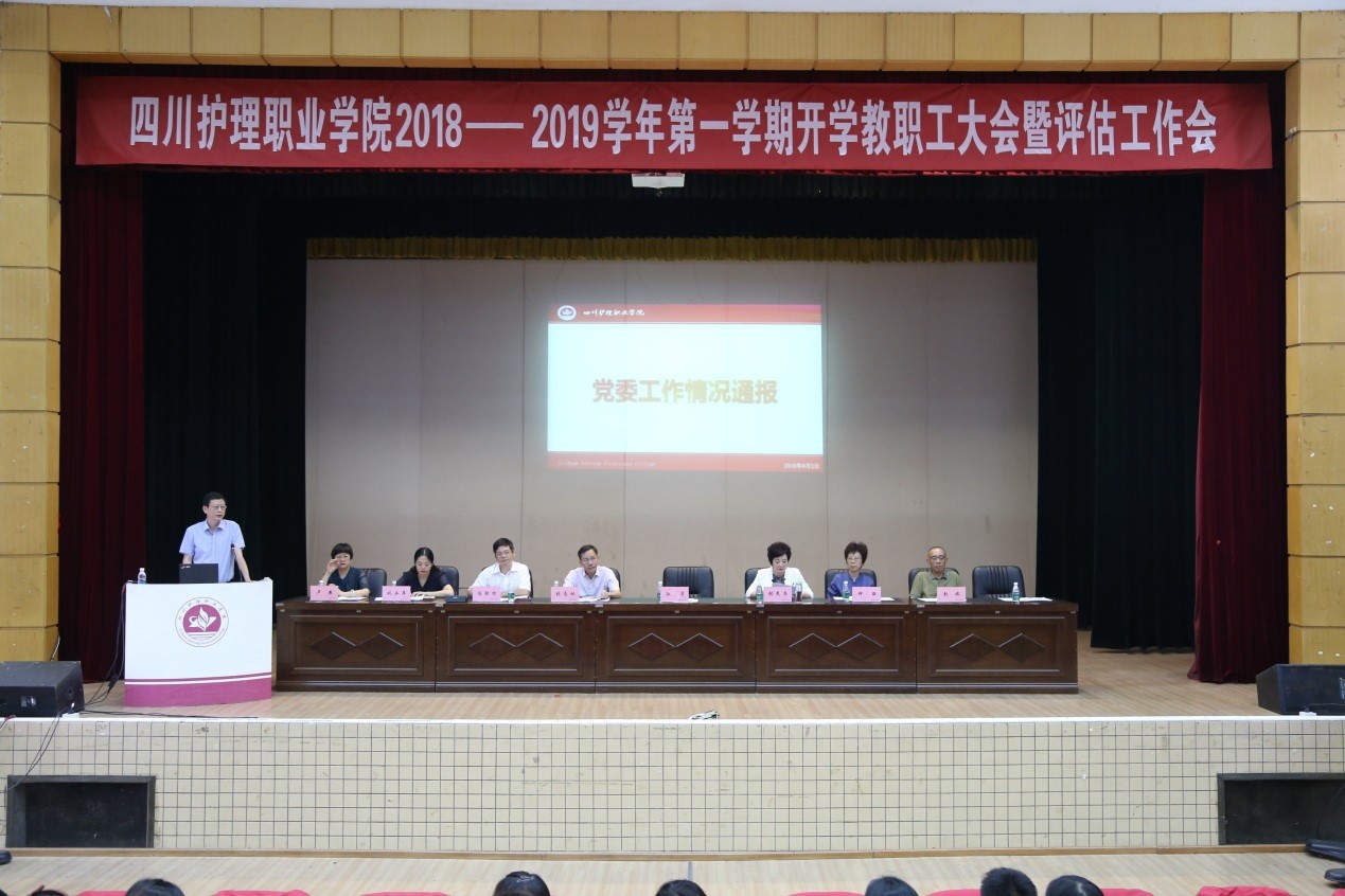 9月2日,学院2018年秋季学期开学职工大会暨评估工作会在成都校区学术报告厅举行,会议分为两大部分,一是职工大会,由陈劲松副院长主持,张先庚院长、江涛书记分别对假期学院行政、党委工作做通报并对新学期工作做安排。二是评估工作会议,由姚永萍副院长主持,张先庚院长对评估工作做重点部署。