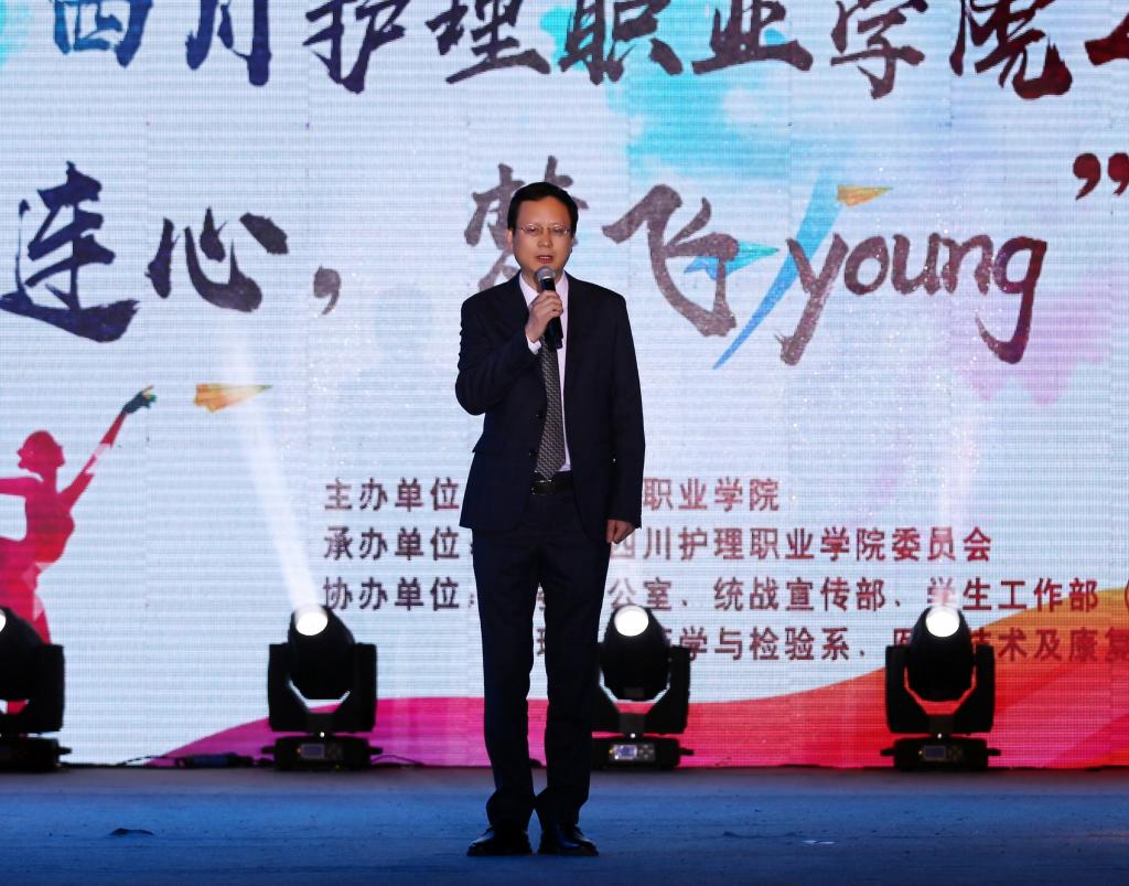 江涛书记为晚会致辞,他指出,在大健康背景下,成为崇高而神圣的医疗行业一员、成为川护学子是同学们最正确的选择,期望同学们珍惜时光、刻苦学习、用心实践、全面发展。