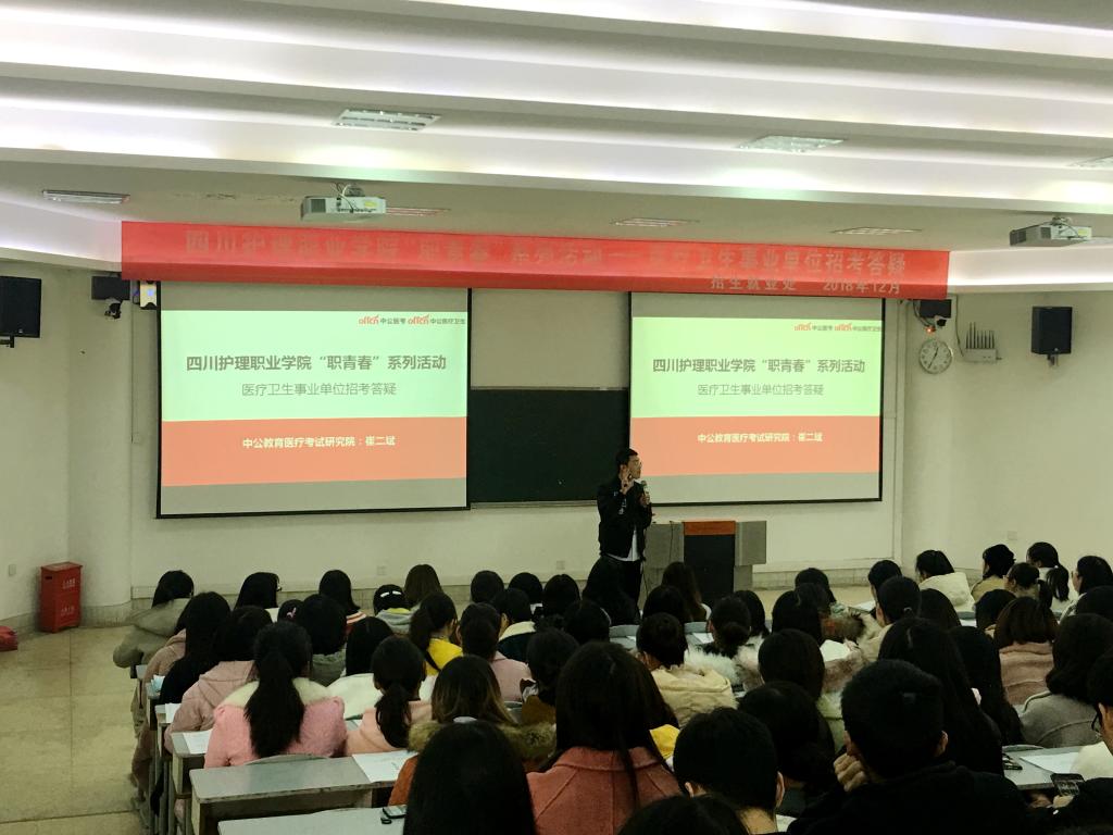 12月3日,我院邀请中公教育研究院在成都校区举办了“beat365官方网站“职青春”系列活动——医疗卫生事业单位招考答疑”讲座。300余名学生参加了本次讲座。