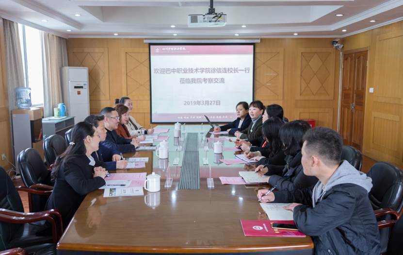 2019年3月27日,巴中职业技术学院校长徐信连一行5人到我院考察交流。学院副院长姚永萍及相关部门负责人参加了考察交流活动。