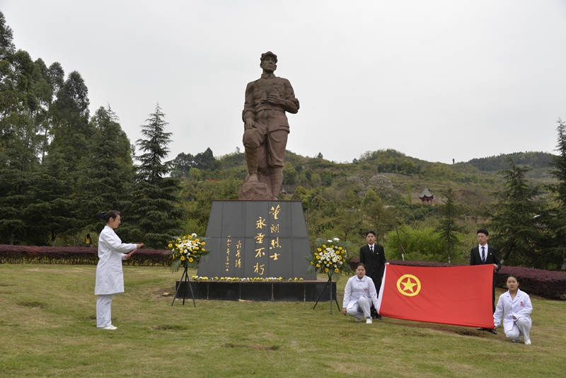 2019年3月31日清晨,学院团委组织各系团员代表和青年志愿者代表共40名同学前往龙泉驿区长松寺烈士陵园开展以“青春心向党,建功新时代”为主题的清明节扫墓活动。