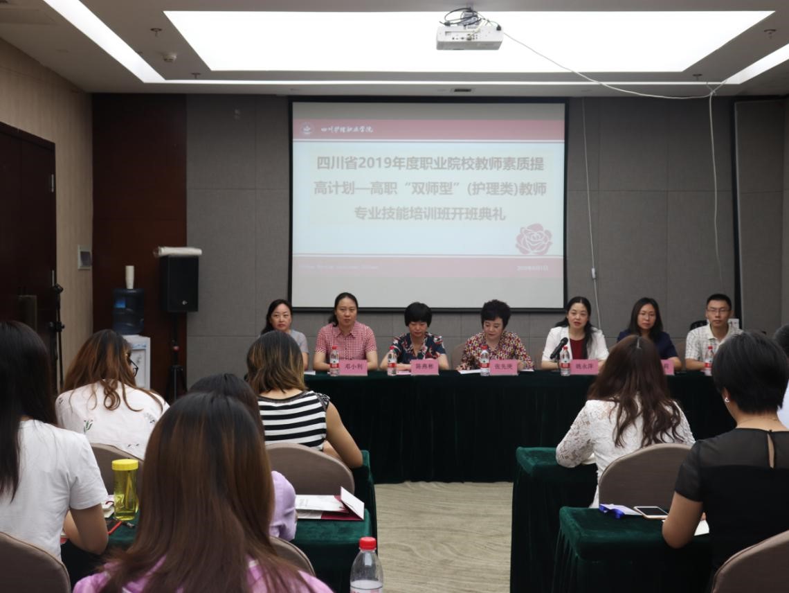 8月1日上午,2019年“四川省职业院校教师素质提高计划--高职‘双师型’教师专业技能培训班”开班仪式在beat365官方网站成都校区举行,来自全省9所高职院校的20名教师参加。学院院长张先庚、副院长姚永萍,产教部和护理系相关负责人出席开班仪式。开班仪式由姚永萍副院长主持。