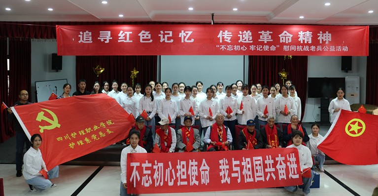 9月26日下午,护理系党总支党员代表、团总支学生代表一行43人前往成都市晚霞社会养老服务中心开展“不忘初心、牢记使命”慰问抗战老兵公益活动。
