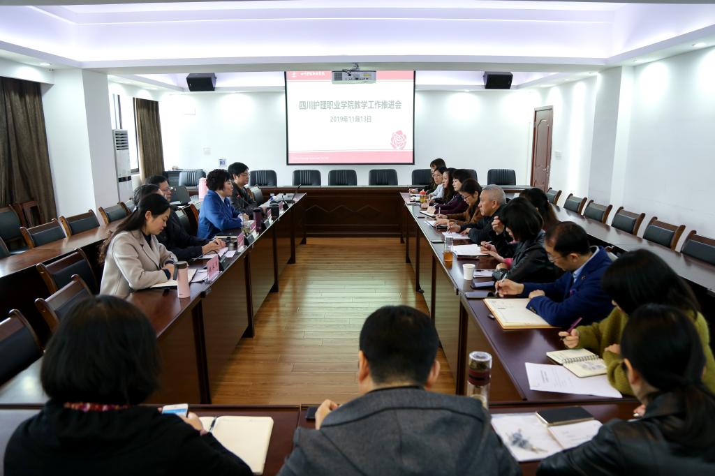 为深入开展 “不忘初心、牢记使命”主题教育工作,学院党委书记江涛、院长张先庚带领党委副书记张志林、副院长陈劲松、副院长姚永萍深入教学一线,密切联系系部,于11月13日在成都校区教师发展中心召开2019年秋季学期教学工作推进会,对标“双高”找差距、解困惑,切实提升教育教学质量。教务处、实训部及各系部主要负责人参加了会议,会议由姚永萍副院长主持。
