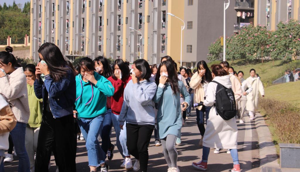 为增强师生安全意识,帮助师生学习、掌握安全知识、技能,熟悉紧急疏散路线,提升自救自护能力。11月14日下午,我院在德阳校区开展2019级新生应急疏散演练和消防培训。院领导江涛、张先庚、陈劲松、卢燕,四川省消防协会教官周金贤以及学院相关职能部门负责人现场观摩指导,学院院长张先庚担任总指挥。