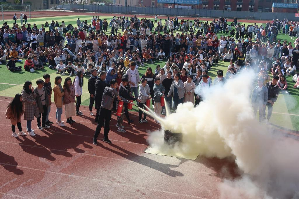 在消防培训环节,四川省消防协会教官为师生讲解扑灭初期火灾、报警、逃生等消防安全知识,并进行灭火器、消火栓使用实操演示,部分同学代表在教官的指导下,参与了灭火器使用实操。