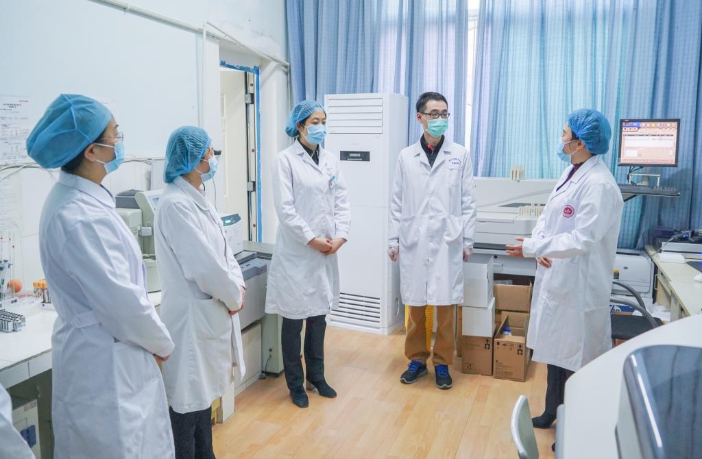 队长张先庚教授看望了在一线工作的社区工作人员和志愿服务队队员,充分肯定大家勇于担当、顾全大局、甘于奉献的精神,鼓励用其自身专业优势打好这场疫情阻击战。随后,队长张先庚教授一行与附属医院党总支书记姚永萍等一同深入检验科、CT室和急诊科,对疫情防控和专科建设等工作进行全面指导。