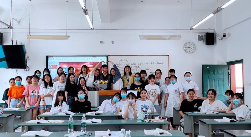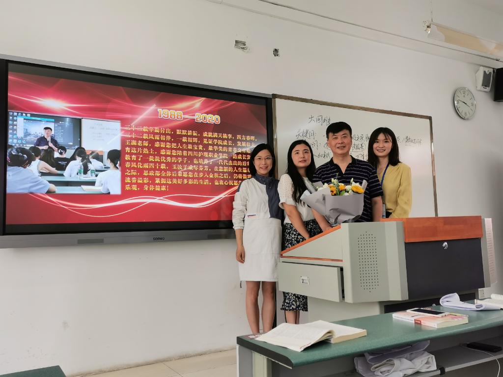 王澜老师在我院三十多载教学生涯中,辛勤付出和默默耕耘,以自身扎实理论功底、渊博知识储备和丰富教学经验培养了一批批优秀川护学子,陪伴和见证了学院的发展壮大。课后,思政部的领导和同事们为他送上鲜花,欢迎他退休后“常回家看看”,一如既往地关注关心思政部的建设和发展,并衷心祝福他老有所乐、身体健康。同学们无不动容,纷纷送上自己的祝福。