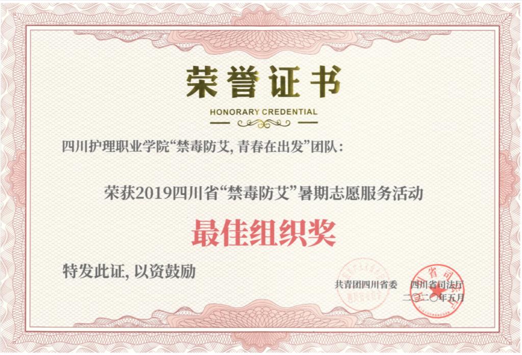 近日,共青团四川省委、四川省司法厅联合发文,通报在2019度“禁毒防艾”暑期志愿服务活动中表现突出的集体。我院药学系“禁毒防艾,青春在出发”团队荣获2019四川省“禁毒防艾”暑期志愿服务活动“最佳组织奖”。