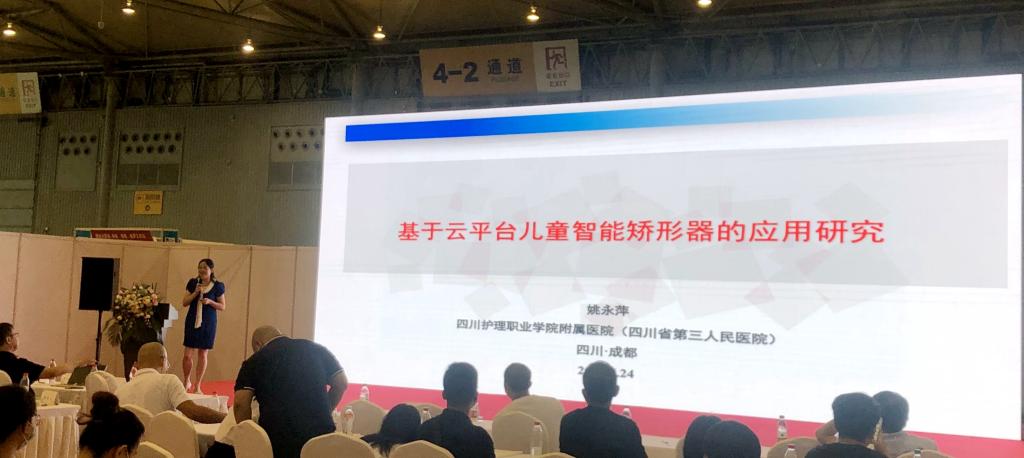会上,姚院长做“基于云平台儿童智能矫形器的应用研究”专题报告。她从项目背景、进展情况、成果转化等方面介绍矫形器的研发情况。姚院长以脑瘫患儿目前的生存医疗情况为切入点,指出脑瘫患者的精准康复治疗是一个亟待解决的问题。此款矫形器是整合医疗、生物工程、互联网+等多学科交叉且面向基层、残联、家庭的人机交互智能产品,在研发过程中,融合了布法罗外骨骼机器人创意,以“一体两翼”为核心,搭载人工智能的云平台服务,引入云端数据进行监测,根据个人情况定制康复方案,使整个康复过程交互、智能、可视。姚院长指出,学院在研发产品的同时也注重人才的培养,确立了儿童康复专门化人才培养方向,成功申报四川省儿童智能康复重点实验室,开展了10余场学术讲座,进行了矫形器临床注册以及开展临床试验。目前,项目正致力于构建集康乐游戏一体化的脑瘫儿童康复训练系统,在常态化的疫情防控形势下,为脑瘫患儿的居家康复提供行之有效的解决方案。