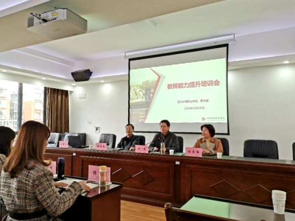 为深入贯彻落实立德树人根本任务,加快推进我院思政课程建设,10月28日下午,学院组织召开了思政教师能力提升培训会,邀请成都中医药大学马克思主义学院院长刘东梅教授和学院原思政部副主任、退休教师王澜做专题培训。学院党委书记江涛、副书记张志林出席了会议,思政部全体专兼职教师参加了会议。