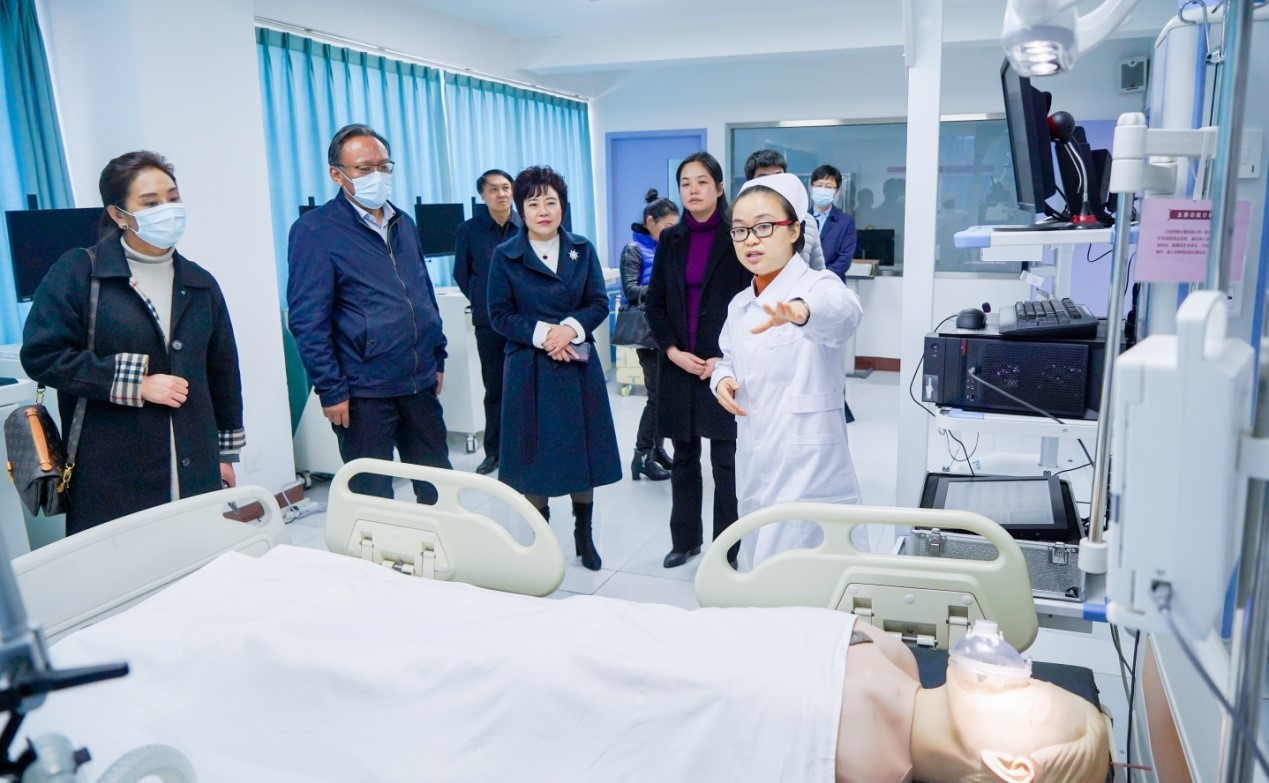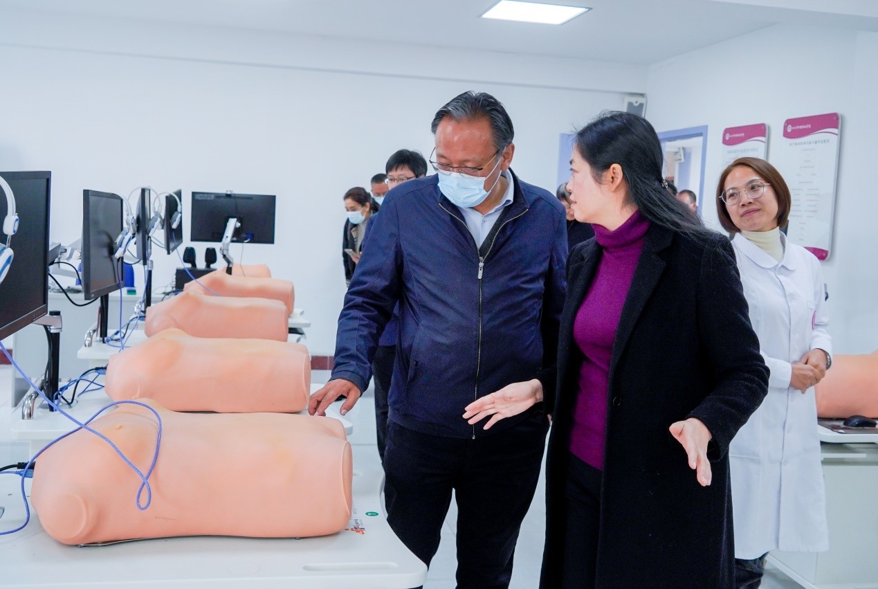 格桑罗布副院长一行实地考察了学院龙泉校区教学督导中心、护理实训中心等,对我院智慧实验室、虚拟仿真实训系统的建设给予了高度评价。