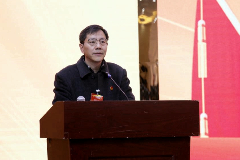学院学生会副主席李泰锋在会上作题为《坚定专业自信 绽放战疫青春 凝心聚力为我院“双高计划”创建而努力奋斗》的工作报告。