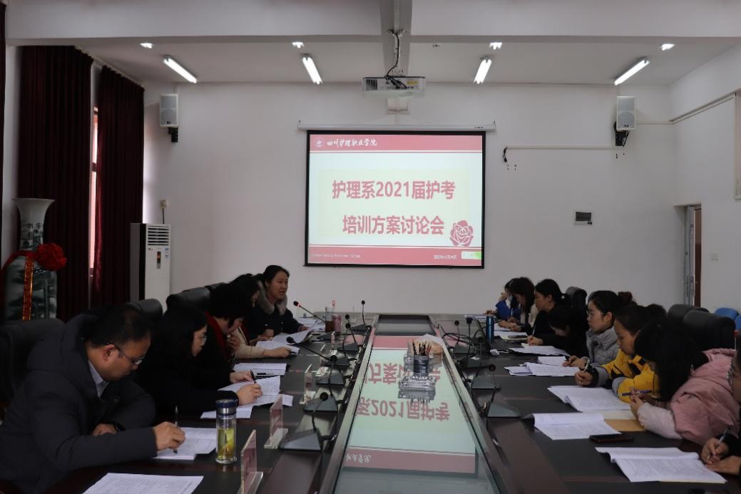 2020年12月29日,护理系2021届毕业生护考培训方案讨论会在德阳校区综合楼408举行。学院党委副书记、院长张先庚,副院长姚永萍出席会议。教务处负责人、护理系党政班子以及部分教职工参加了会议。会议由护理系主任邓小利主持。