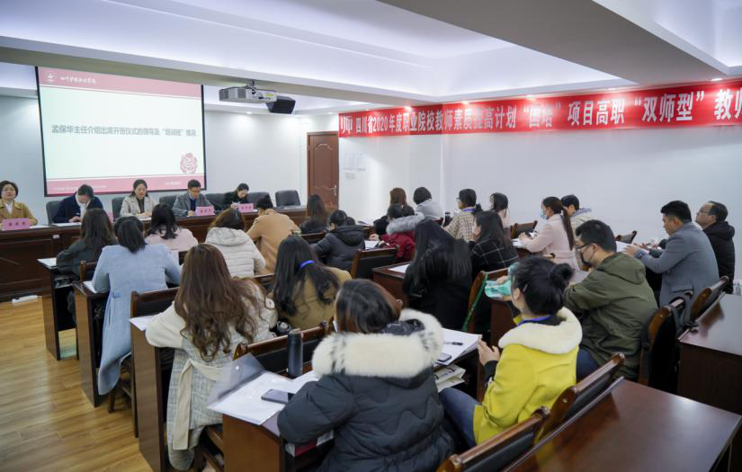 2021年3月8日上午,四川省教师素质提高计划-高职“双师型”专业教师技能培训在我院教师发展中心举行。学院副院长姚永萍出席开班典礼。健康培训中心、护理系等相关部门负责人及来自11个高职院校23名参培学员参加了此次开班典礼。开班典礼由健康培训中心主任孟保华主任主持。