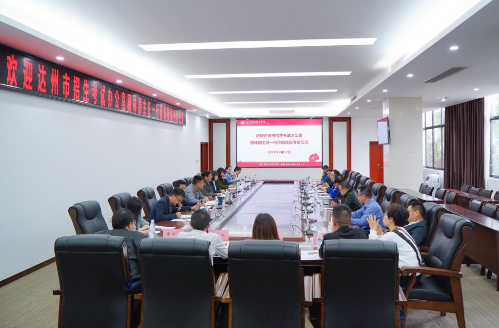3月17日下午,达州市招生考试办公室顾林副主任一行15人来访我院进行调研交流。学院党委委员、副院长陈劲松出席交流活动,学生工作部(团委)、学生处、招生就业处相关负责人陪同。