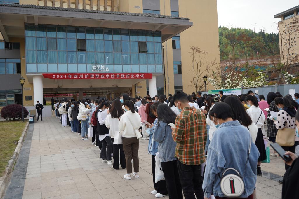 今年学院报考人数在全省单招高职院校中仍然名列前茅,招考范围涵盖护理、康复、药学、医学检验技术、医学美容技术、中药学、中医养生保健、助产8个专业。本次考试分成都校区和德阳校区两个考区,采用文化考试与综合素质、专业技能测试相结合的方式进行,在基础知识考核的基础上,注重实际技能操作能力、临床思维能力以及专业综合素质考核,选拔具有一定实践能力和创新能力、对报考专业兴趣浓厚并具备一定专业潜质的学生,更好地为区域医疗和社会卫生事业发展服务。27日上午文化素质考试包括语文、数学、英语三科,下午综合素质和专业技能面试,针对不同类别的考生着重考察学生的综合素质能力和专业技能。