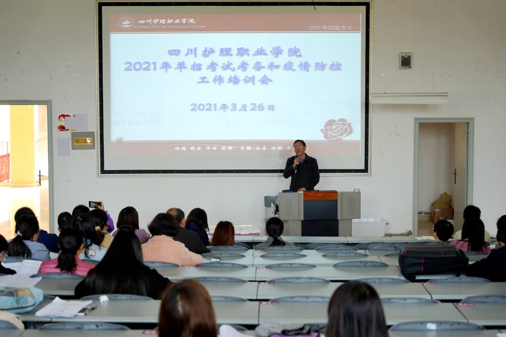 为确保考试工作的顺利进行和疫情防控的责任到位,学院领导高度重视,按照省考试院的要求出台了疫情防控方案、考务方案、应急方案等,设置单招考试工作小组,多次召开单招工作专题协调会议。3月26日下午全院组织召开了单招考试工作培训会,两考区主考党委副书记张志林和副院长姚永萍在培训会中要求各工作组要认真组织、精心准备、规范流程、严密防控、热情服务,明确疫情防控应急处置流程,全力做好单招考试的相关工作,确保本次考试任务圆满完成。
