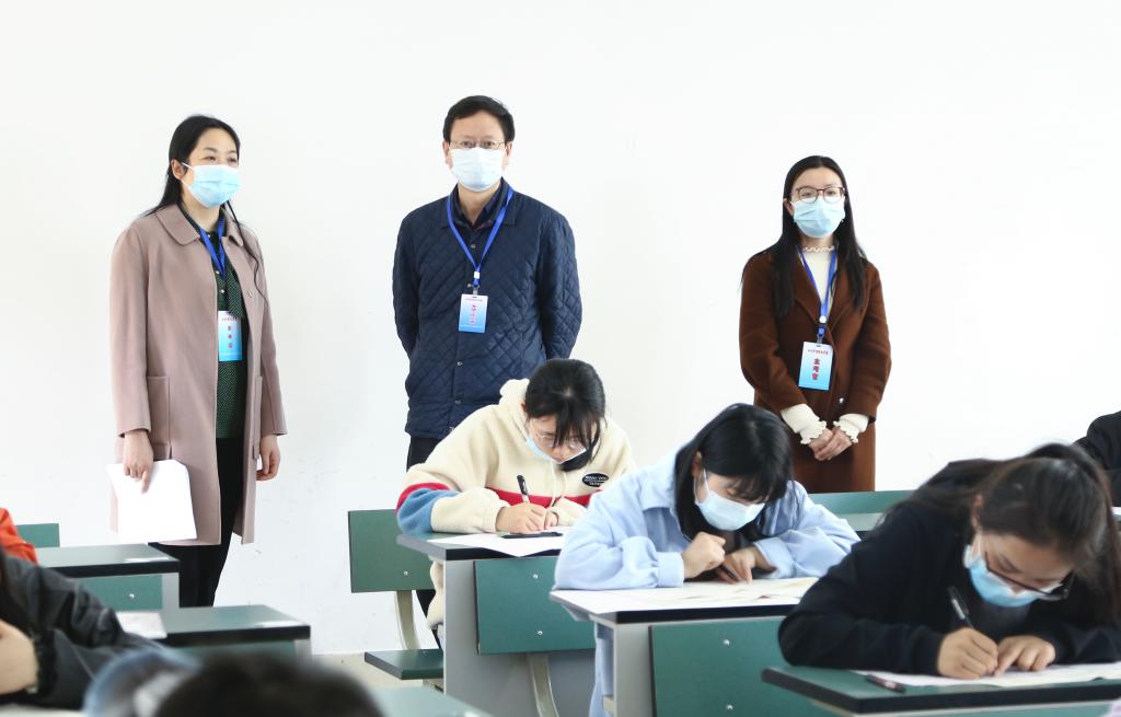 考试当天,党委书记江涛深入考区带领相关人员巡查考场秩序、考风考纪等情况,并对各项工作给予全面指导。