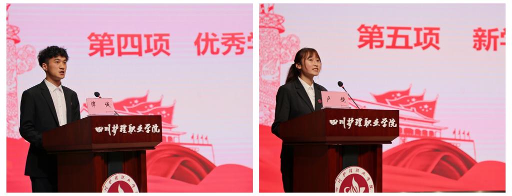 上期优秀学员代表谭诚同学分享了自己在培训班学习的收获。他说,青马培训班是锻炼青年学生品格意志,提高思想觉悟的大课堂,他表示自己将勇担时代重任,在奋斗中实现青春梦想。新学员代表户饶同学也向学员们发出倡议,要牢记自己的承诺,以饱满的热情和高昂的斗志融入本次培训中,努力成为马克思主义的合格践行者。