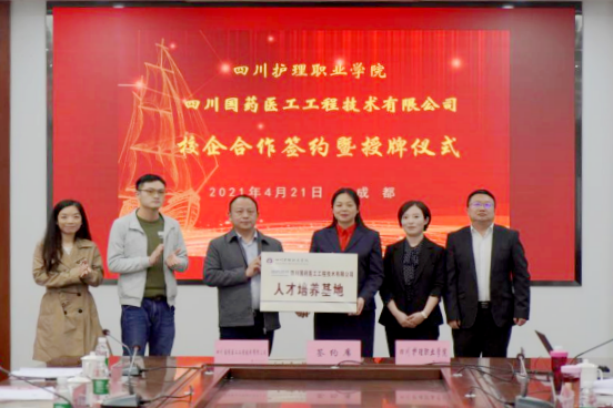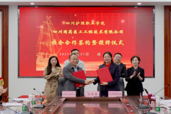 为贯彻落实国家职教政策和四川省职业教育改革实施方案,深化产教融合,助力健康中国战略的实施,4月21日上午,学院与四川国药医工工程技术有限公司的校企合作签约仪式在成都校区举行。四川国药医工工程技术有限公司总经理左佳明、四川大学华西第二医院医学装备保障部主任王溪、四川大学华西医院医学工程科主任刘麒麟,学院副院长姚永萍出席签约仪式。签约仪式由医疗技术系主任周佳丽主持。