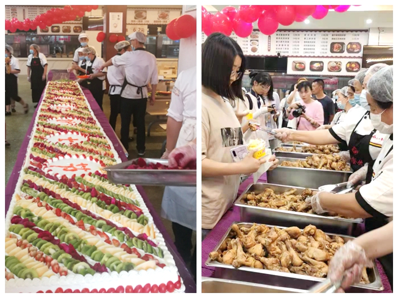 为庆祝第110个护士节,2021年5月12 日,学院后勤管理处和食堂承包方联合举办“感恩天使 食堂在行动”主题活动,免费为全校师生提供蛋糕、鸡腿等美食。