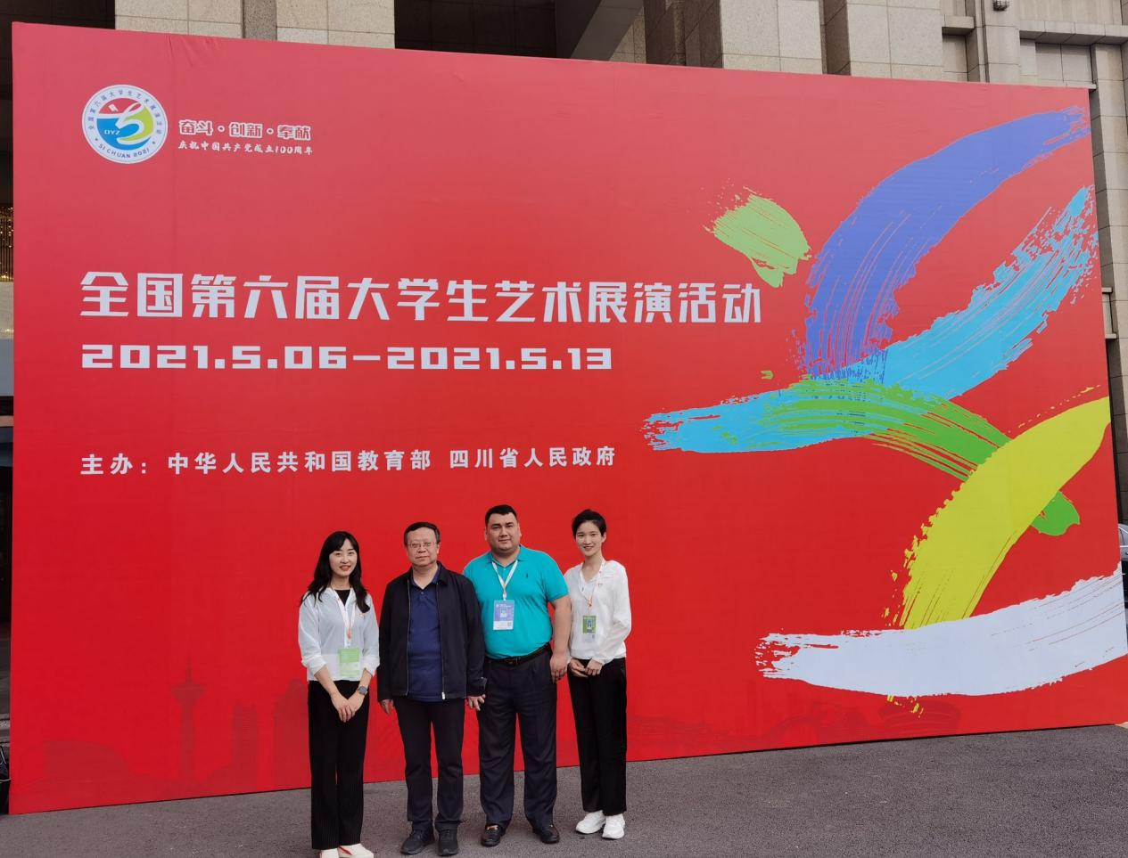2021年5月6日至13日,由教育部和四川省人民政府共同主办,四川省教育厅和成都市人民政府共同承办的全国第六届大学生艺术展演活动在四川成都举办。我院作为参与全省对口接待和志愿服务工作的高校之一,负责接待新疆维吾尔自治区展演团队。
