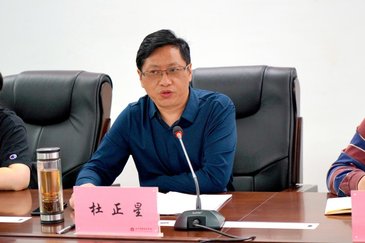 杜正星介绍了调研的背景和目的,他指出,此次调研一方面是了解和检查学校返岗教研工作的组织开展情况,另一方面是征集高校对师资培训、干部培训的反馈意见和建议,有助于省师培中心更好地为高校服务,提升培训质量。