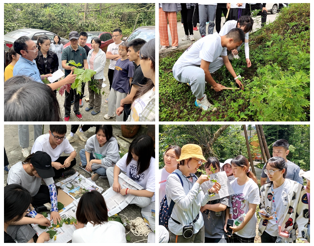 本次教学实践中,老师们将理论与实践紧密联系,对100多种药用植物的来源、真伪辨识、标本采集及制作详细讲解,既激发学生学习兴趣,又调动了学生学习的主动性和积极性,同时锻炼了学生的动手操作技能。在两天的活动中,同学们完成了黄连、厚朴、川芎、夏枯草、木通、大黄、黄柏、鱼腥草、香薷、石韦等70余种药用植物的标本采集和初步压制,收获颇丰。