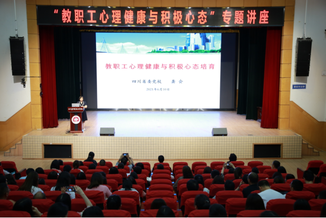 为缓解教职工工作任务重、工作强度大等多重压力,关爱教职工的身心健康,增强我院教职工的幸福感、获得感和安全感,2021年6月10日,学院邀请中山大学管理学博士,四川省委党校副教授龚会在成都校区(德阳校区同步直播)开展以“教职工心理健康与积极心态培育”为主题的专题讲座。学院党委书记江涛、副院长陈劲松、姚永萍、省卫校副校长卢燕出席本次讲座。陈劲松副院长主持讲座。