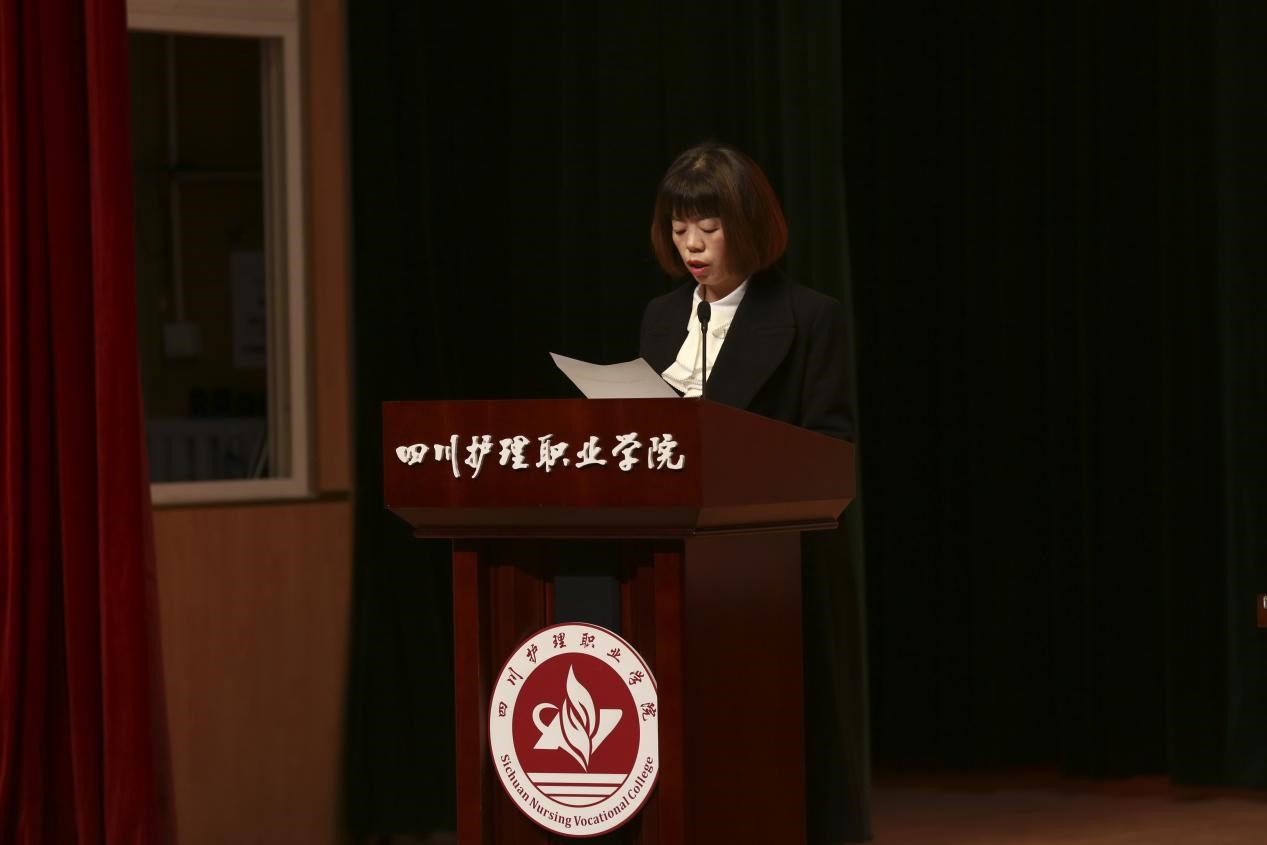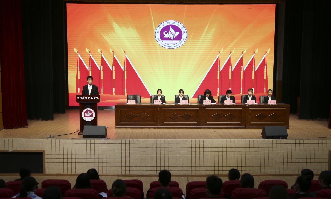 学院第二届学生会主席谭诚在会上作题为《百年征程波澜壮阔 青春向党再续华章 为把我院建成特色“双高”现代医药卫生类高职院校贡献青春力量》的工作报告。
