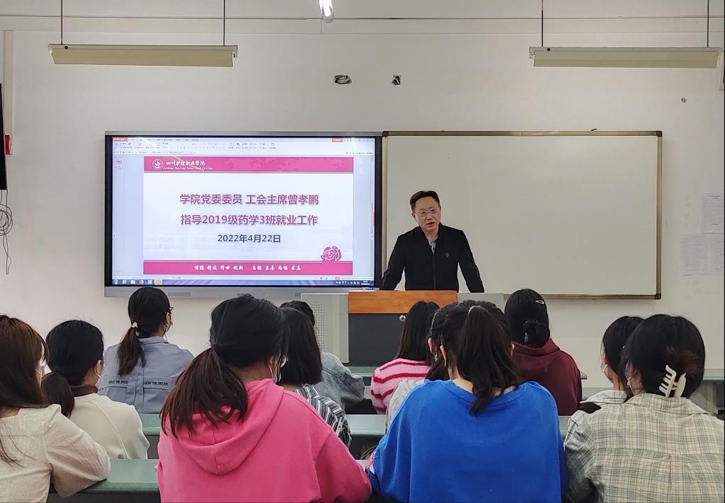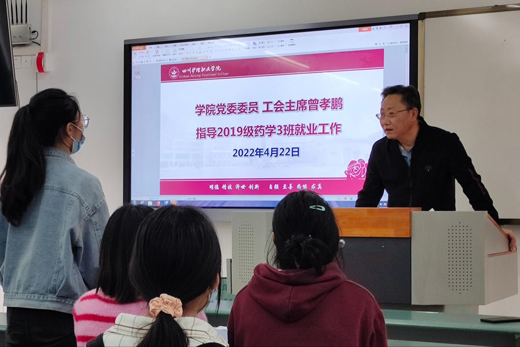 为强化精准服务,切实做好我院2022届毕业生就业工作,学校党委委员、工会主席曾孝鹏于4月22日对就业包干班级——2019级药学3班进行了面对面“一人一策”就业指导。本次就业指导主要是针对该班级希望通过专升本提升学历、暂未就业的学生。